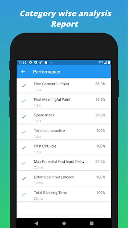★ Webspeed Insigths Report Page neatly summarizes your page performance based off key indicators of page load speed.