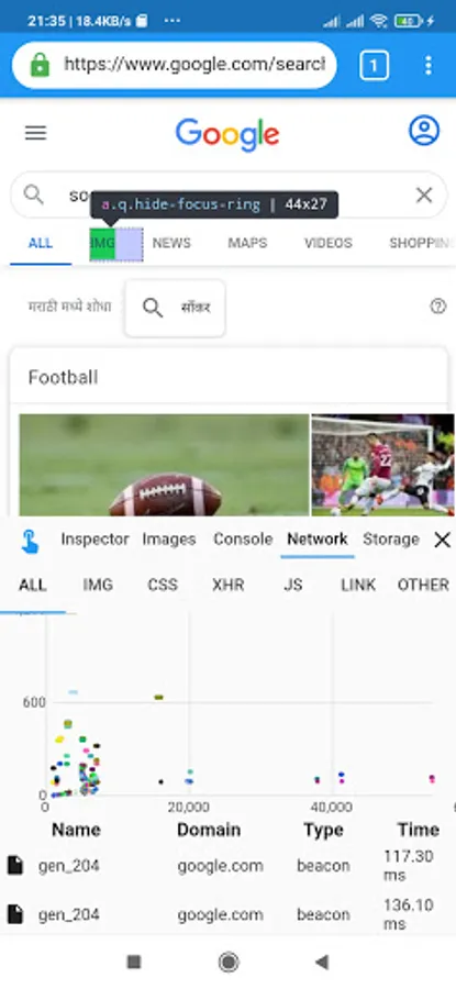 ✔ Network Files such as CSS, js, xhr, images, etc.
