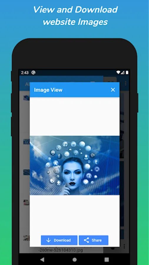 - Website images can be view as an image gallery and it also provides downloading and sharing image options.