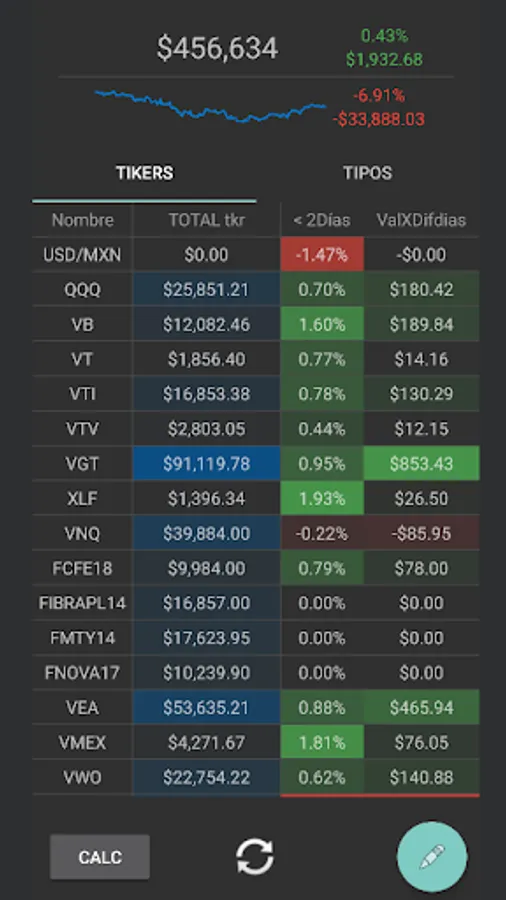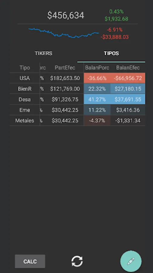 It shows the information in a table with the global data of the portfolio as well as one where the data is grouped into customizable categories, being able to carry out balances and better analyze your strategy.