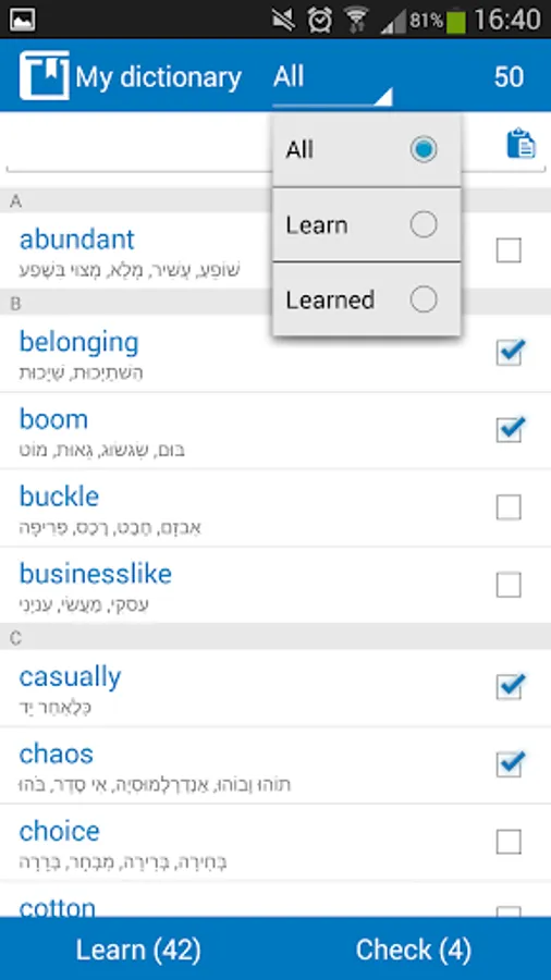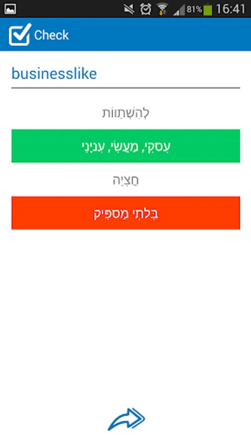 Simple, fast, convenient Hebrew - English and English - Hebrew dictionary which contains 56293 words. The Dictionary is OFFLINE and does not require an Internet connection. The dictionary contains the vocabulary trainer. This is an easy way to learn new words