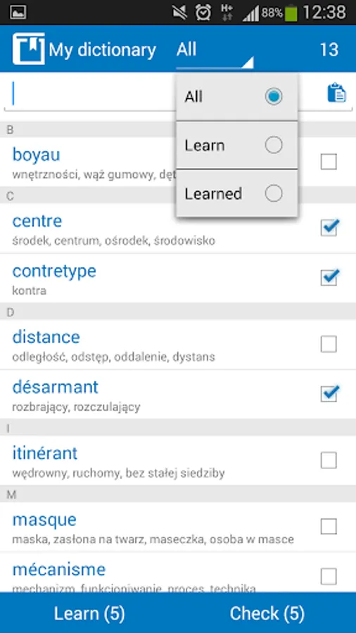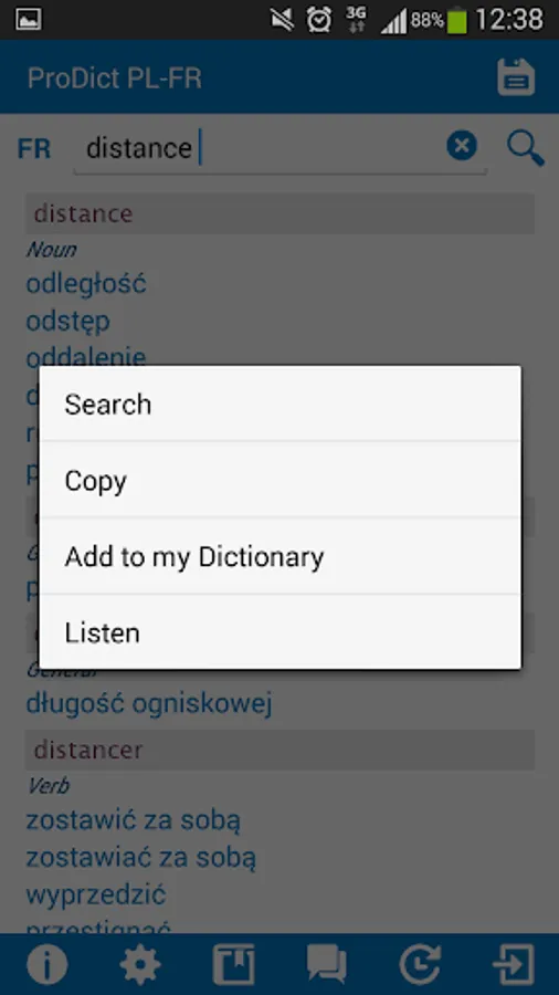 Simple, fast, convenient Polish - French and French - Polish dictionary which contains 102870 words. The Dictionary is OFFLINE and does not require an Internet connection. The dictionary contains the vocabulary trainer. This is an easy way to learn new words