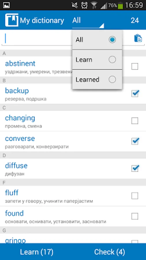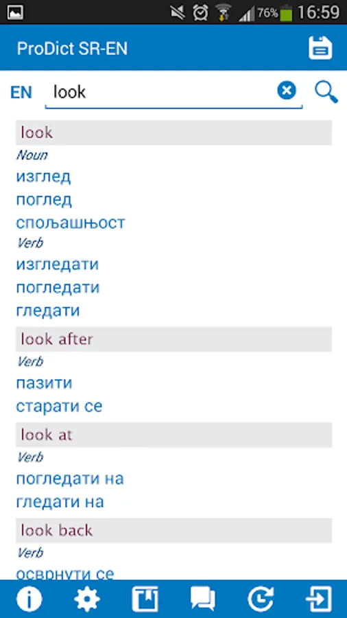 Simple, fast, convenient Serbian - English and English - Serbian dictionary which contains 59200 words. The Dictionary is OFFLINE and does not require an Internet connection. The dictionary contains the vocabulary trainer. This is an easy way to learn new words