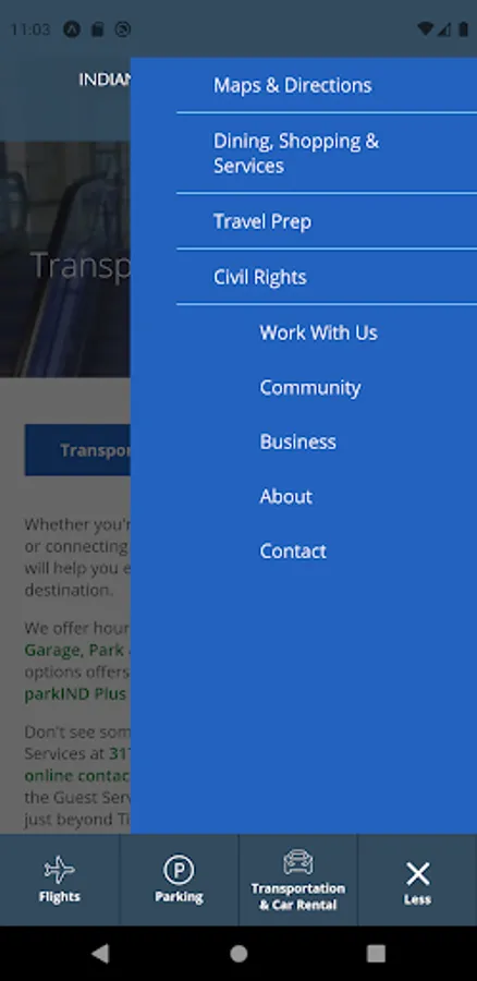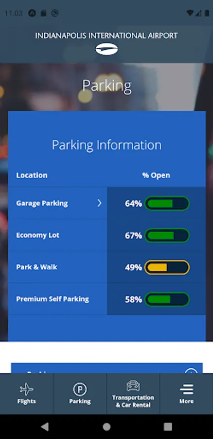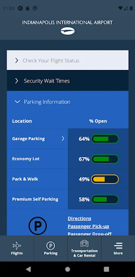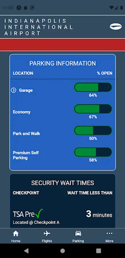 Indianapolis International Airport's Official App features real-time flight arrival and departure information. The App also provides passengers information about parking, airlines, ground transportation and the dining options at the Indianapolis International Airport.