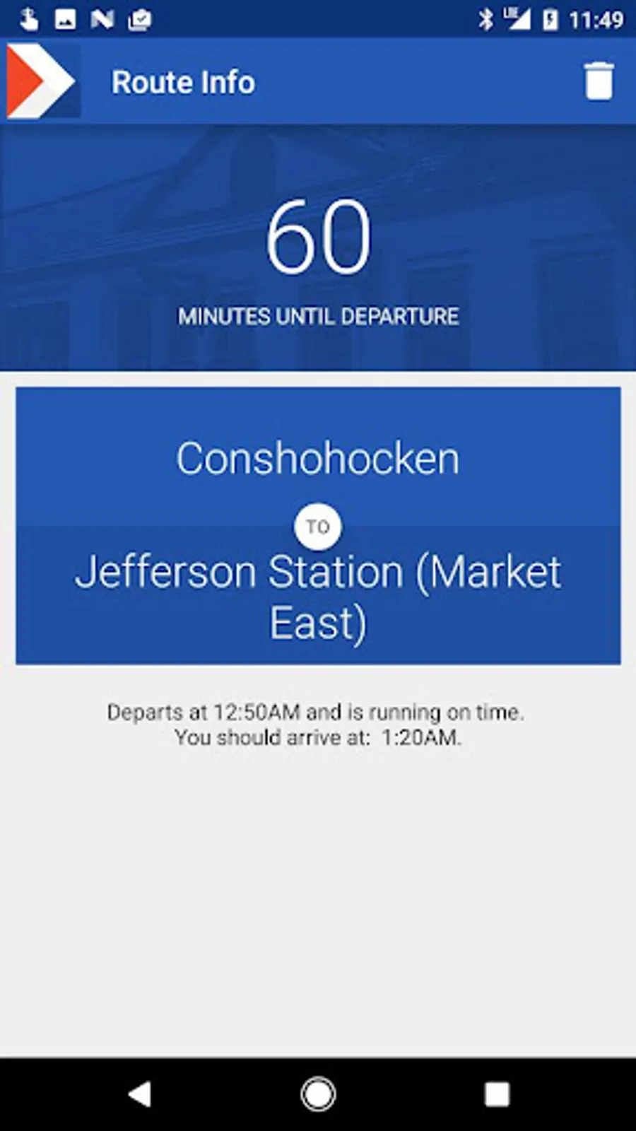 Get Real-Time UP-TO-DATE departure times for your next train at your stop. You'll always know when your next regional rail train is going to leave, whether it's late, on time, or stopped running.