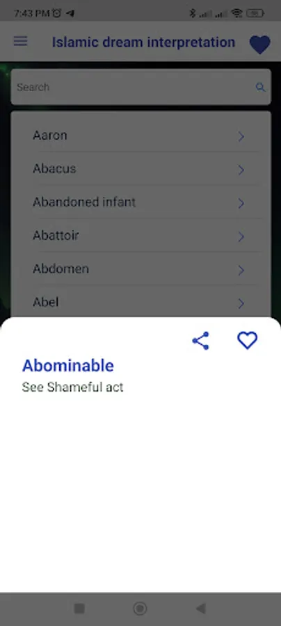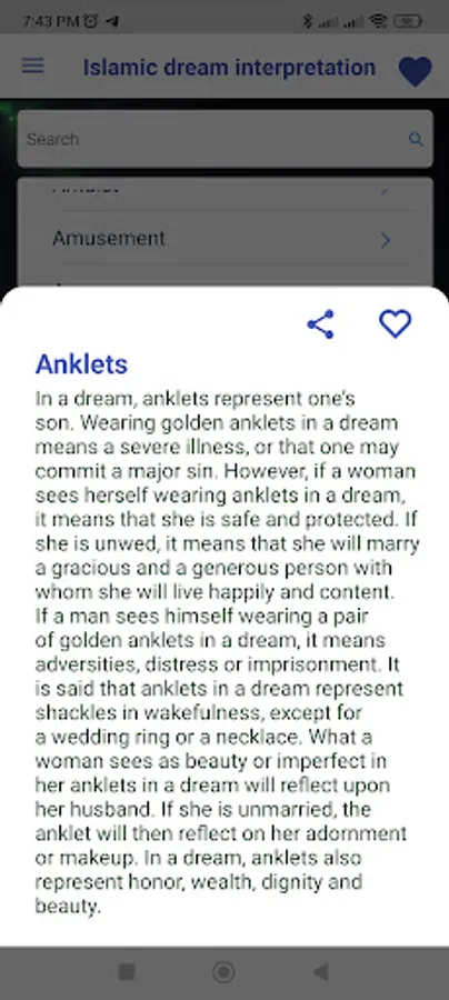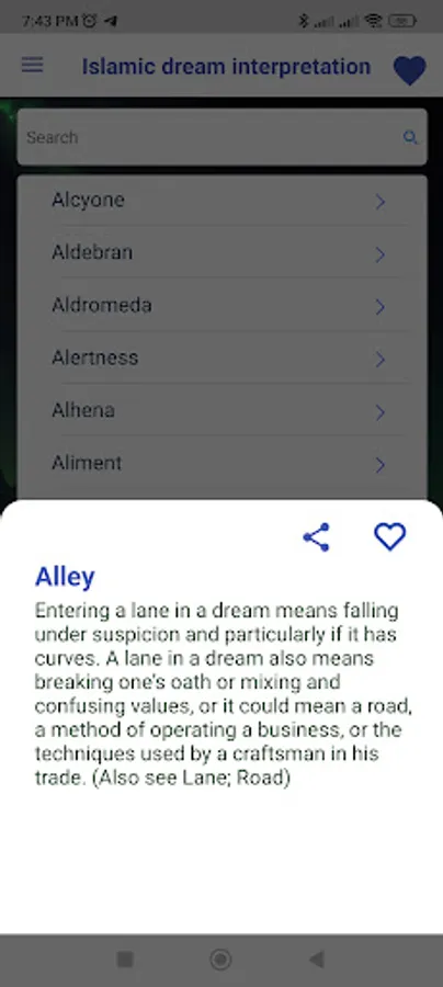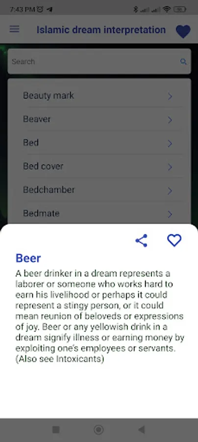 Islamic dream interpretation is an Android app that helps users interpret their dreams from an Islamic perspective. The app features a comprehensive database of dream symbols and their meanings according to Islamic teachings, allowing users to easily search for the symbols they encountered in their dreams and get an interpretation. In addition, the app offers a dream journal feature where users can keep track of their dreams and analyze them over time. The app also includes a community feature where users can share their dreams and get feedback from other users. With its user-friendly interface and comprehensive features, Islamic dream interpretation is the ultimate dream analysis app for anyone who wants to understand the deeper meanings of their dreams from an Islamic perspective.