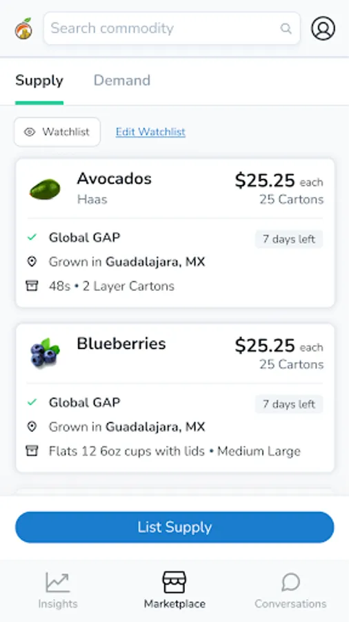 Get daily market prices & weather reports for your crops. View official USDA price data for more than 200 crops and receive alerts for major shifts in market pricing. Create listings for commodities you wish to sell or buy and form relationships with pre-vetted members of our Preferred Network.