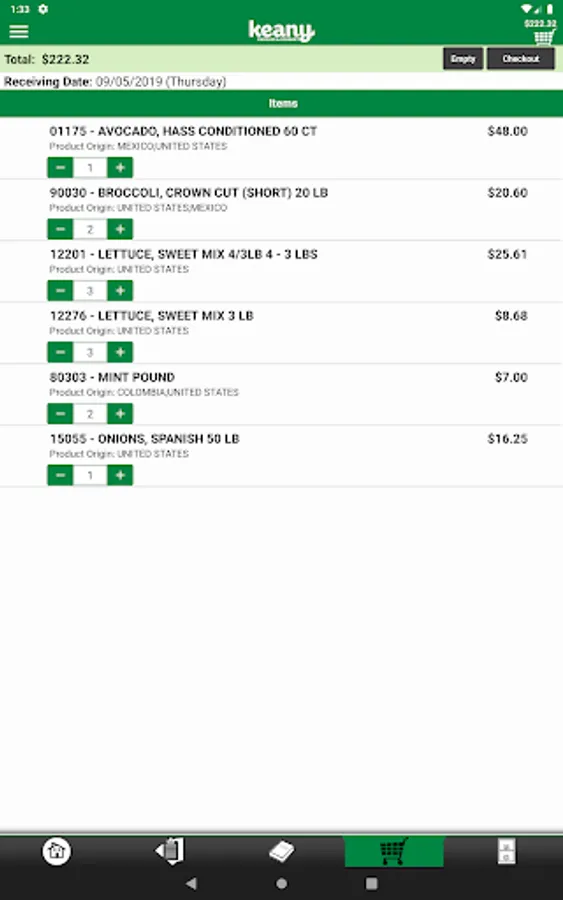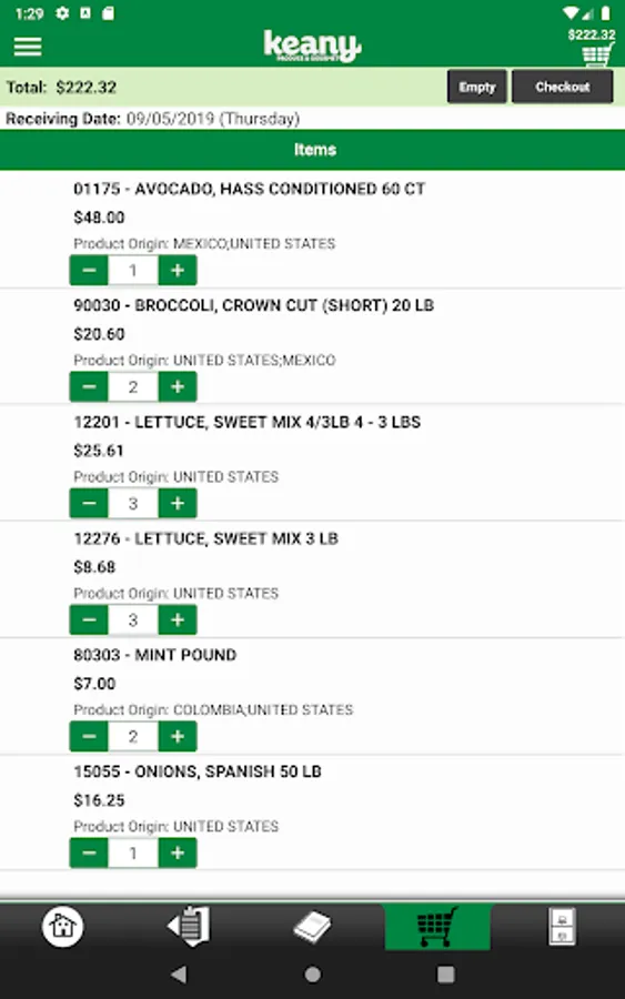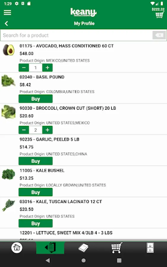 Keany Produce Mobile Ordering App gives customers a fast and easy way to place an order. Customers will be able to access their order guide, browse our entire product catalog, view order history, access invoices, and update orders in real time. Conveniently place your orders for fresh produce, gourmet items, and dairy products without having to leave the kitchen or walk-in.