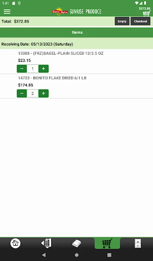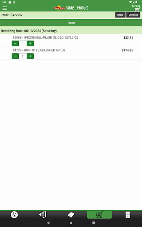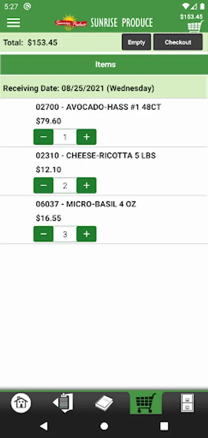 We want to assure our premium produce and products are available to you anywhere you go. Our Sunrise Produce Checkout App provides a convenient and much more accessible way to place your order. Our Checkout App allows you to search our complete catalog, locate your desired items and place your order straight from your mobile device.