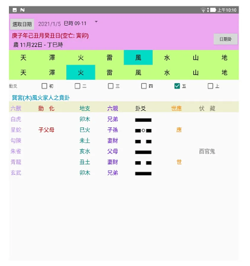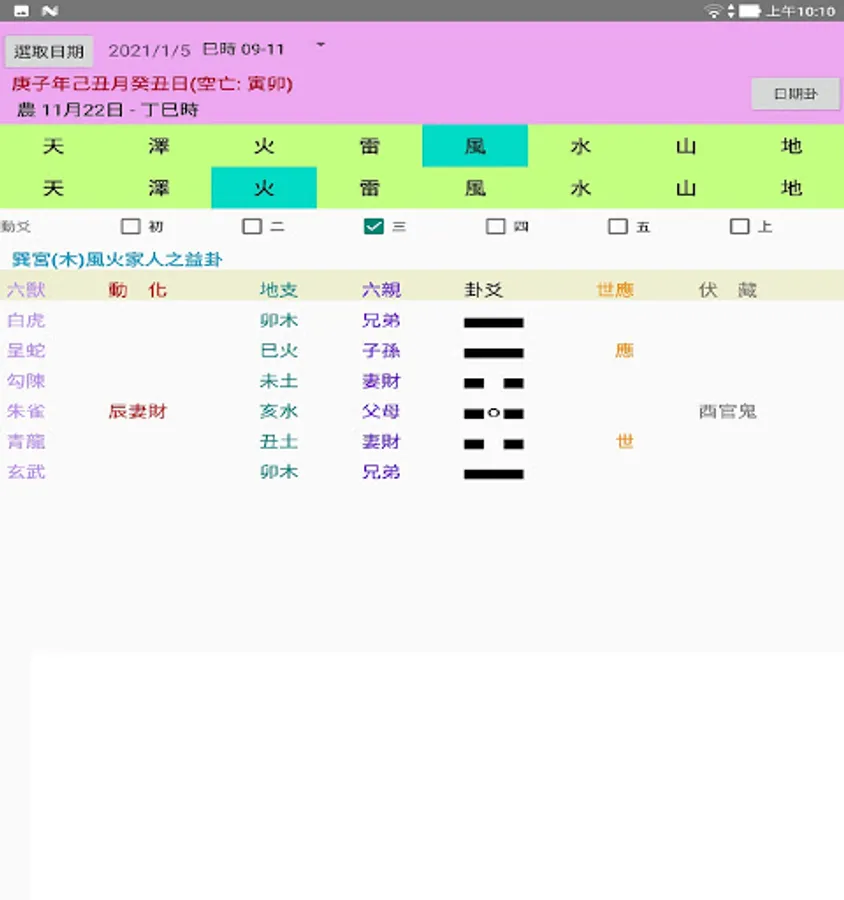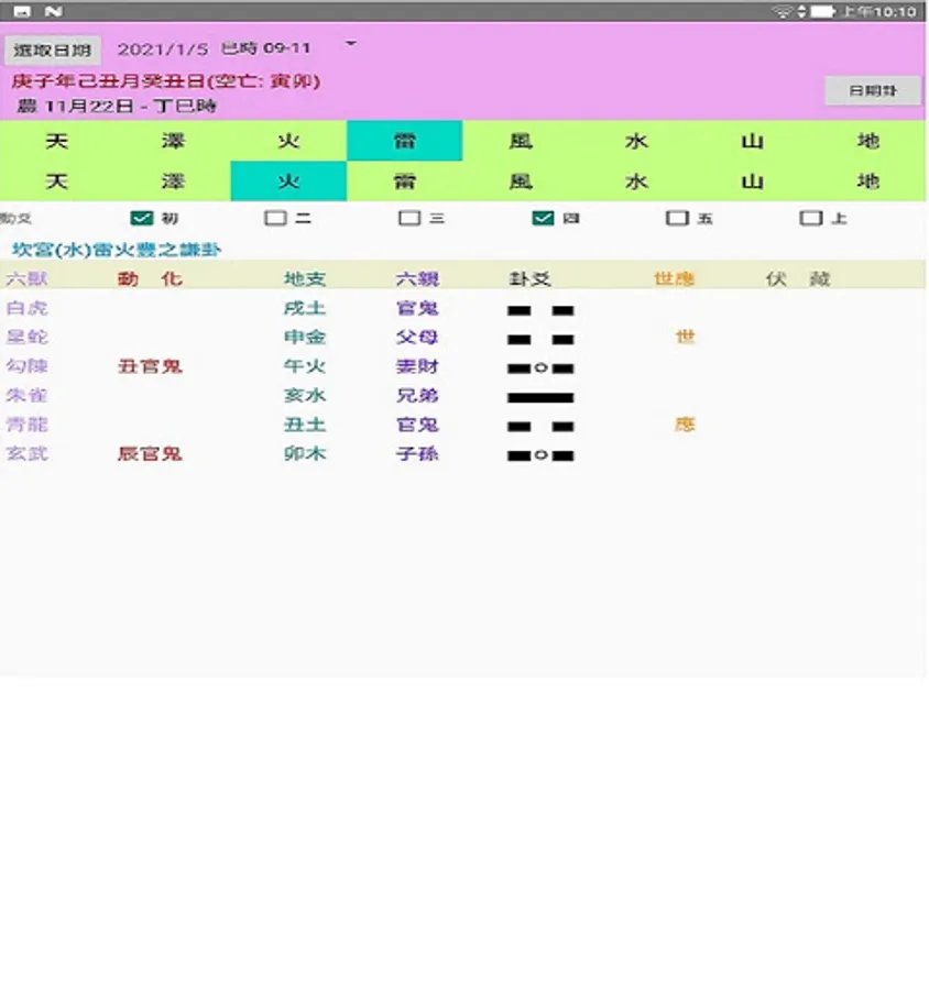 The I Ching-Zhuang Gua APP is now easy to use for fellow practitioners. I hope it will be helpful. It only has the function of sorting out hexagrams but not solving hexagrams.