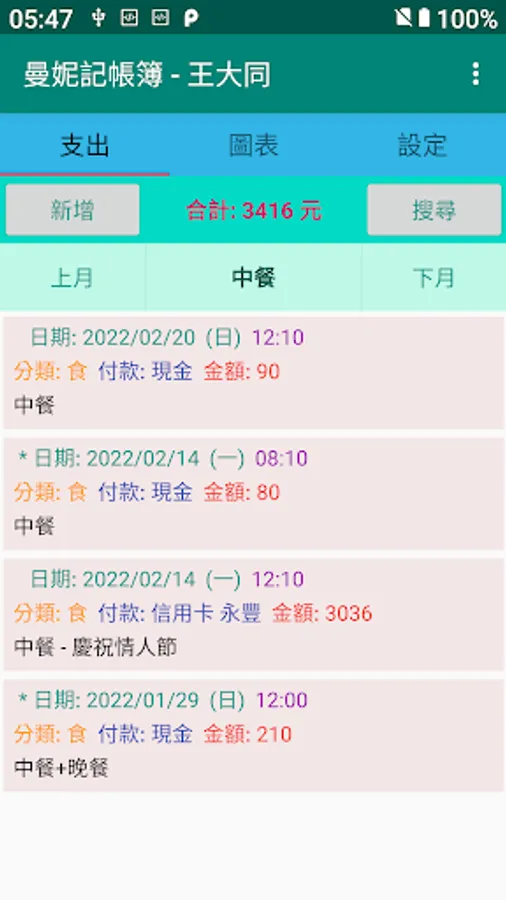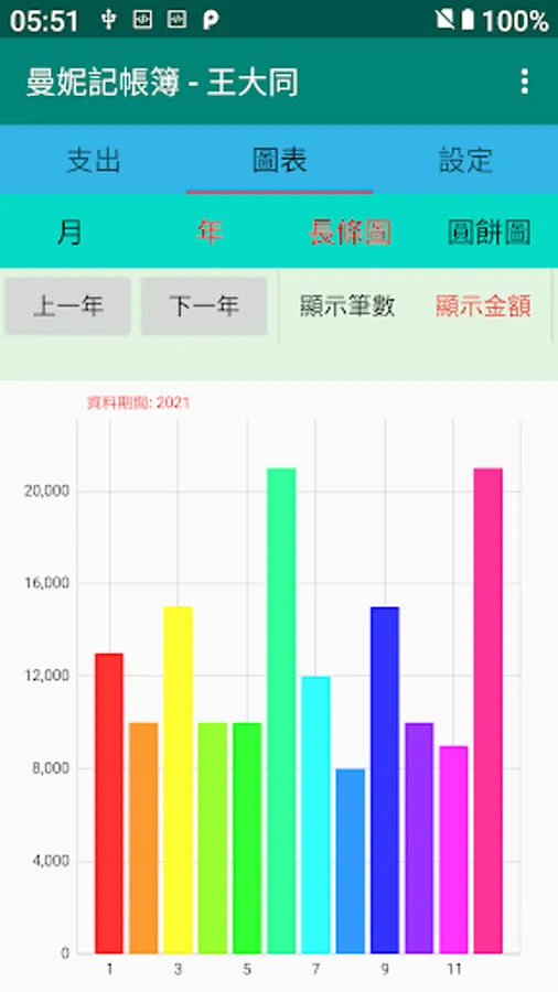 This APP is very useful to grasp the expenditure status by month, year and other statistical charts.
