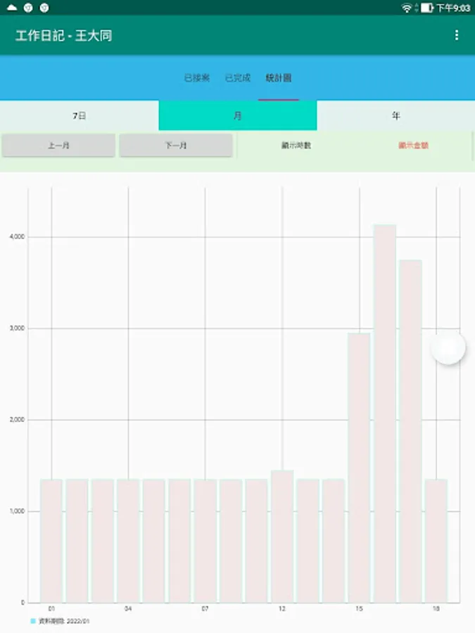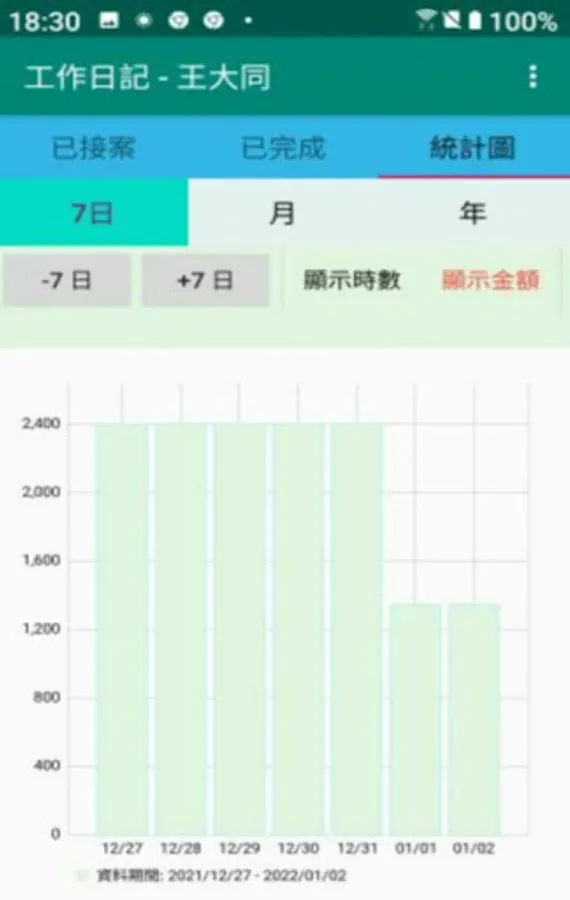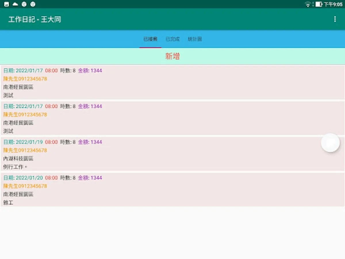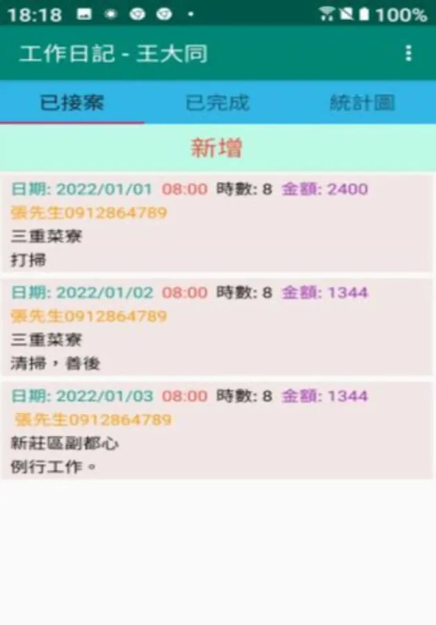 When you receive a job notification, go to the accepted case page, press the add button and enter the relevant information about the job, and when the job is actually completed, mark the case as completed. This APP can record the unfinished work received and completed work data, and summarize statistical charts such as 7 days, months, and years, which is quite practical.