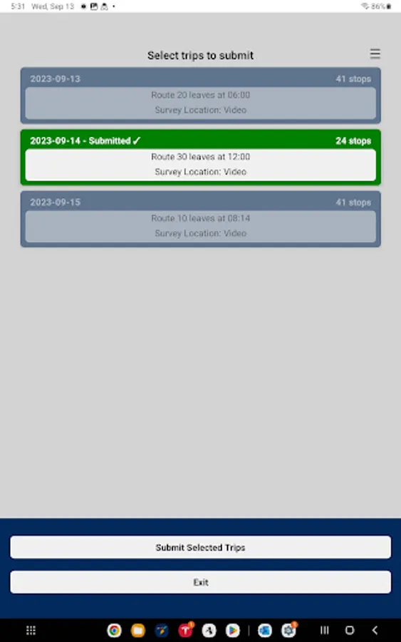 The TransTrack RideCheck App is a tool to assist public transit agencies with organizing passenger ridership for use in the TransTrack Manager. The app allows the surveyor to add and remove riders from a trip to accurately report the number of riders on the bus.