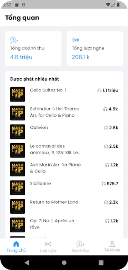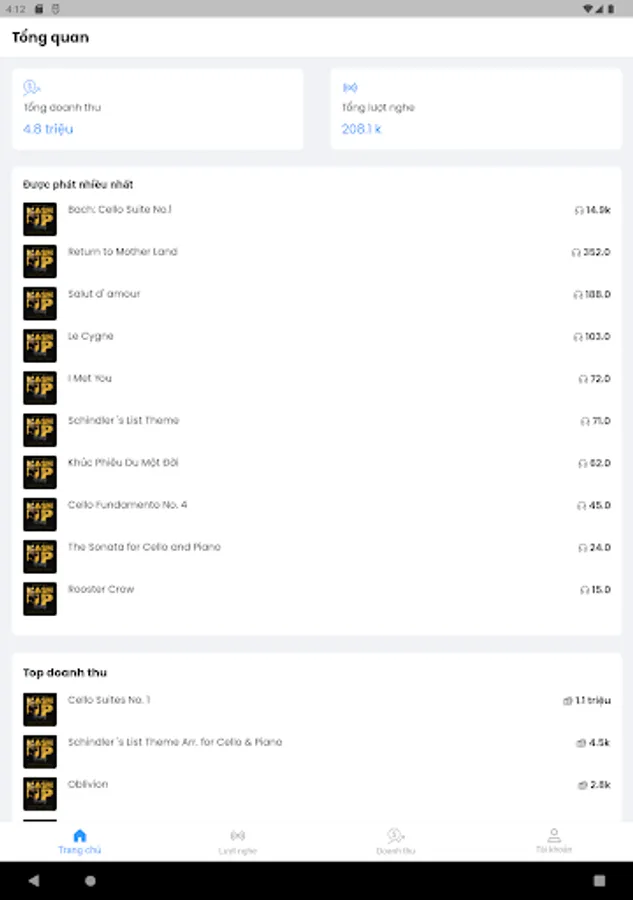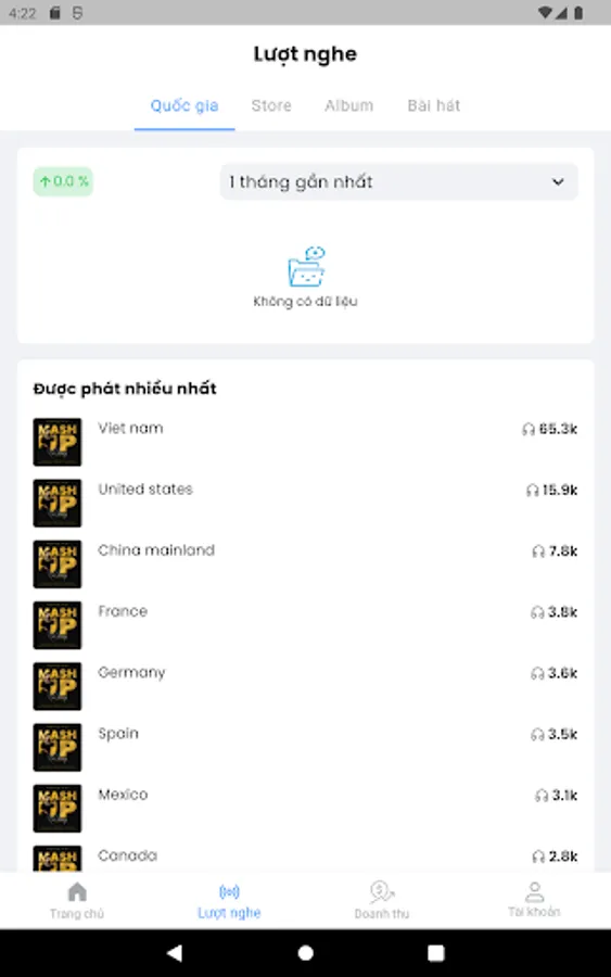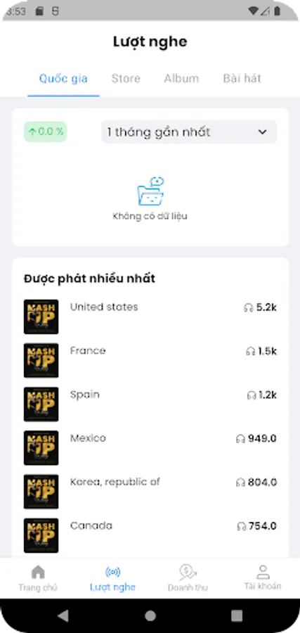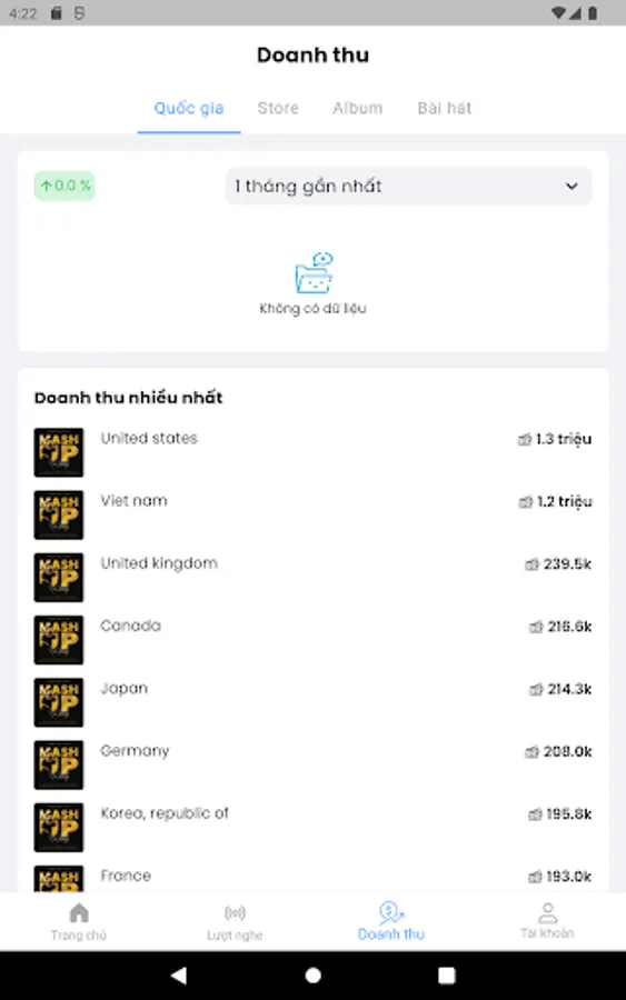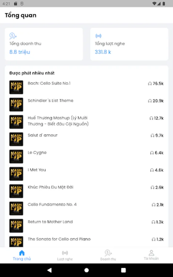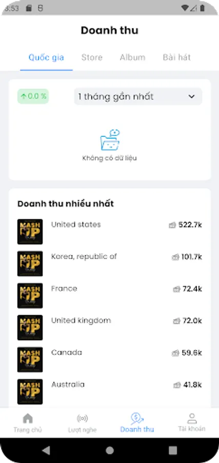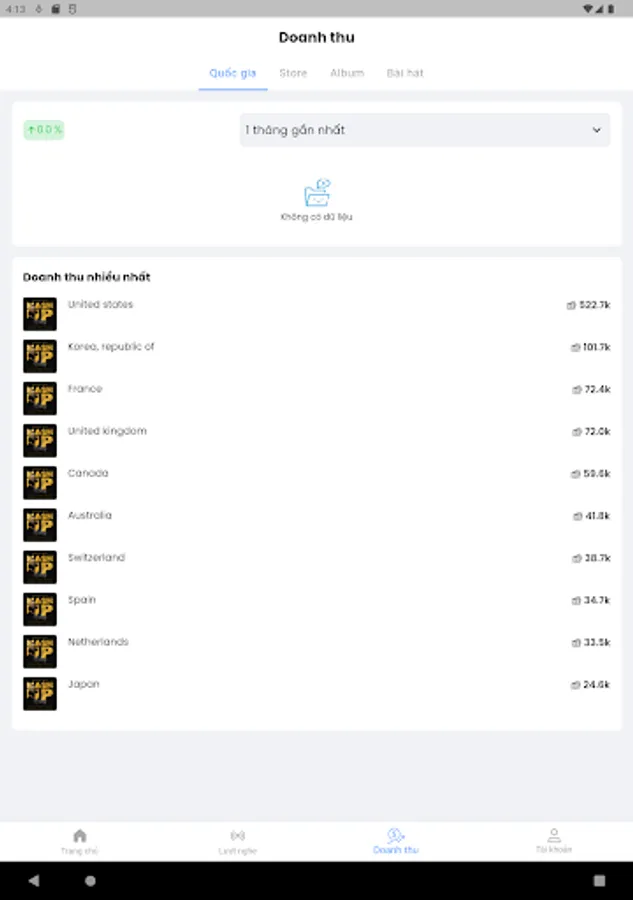 The application helps artists aggregate information about the number of online streams, revenue earned on their music products by country, digital music store or by album and track.
