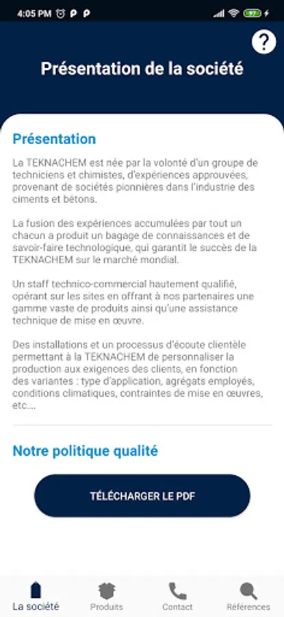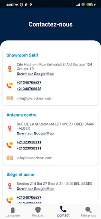 This showcase mobile application is dedicated to TEKNACHEM, a subsidiary of the Hasnaoui Group of Companies.