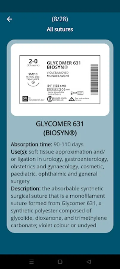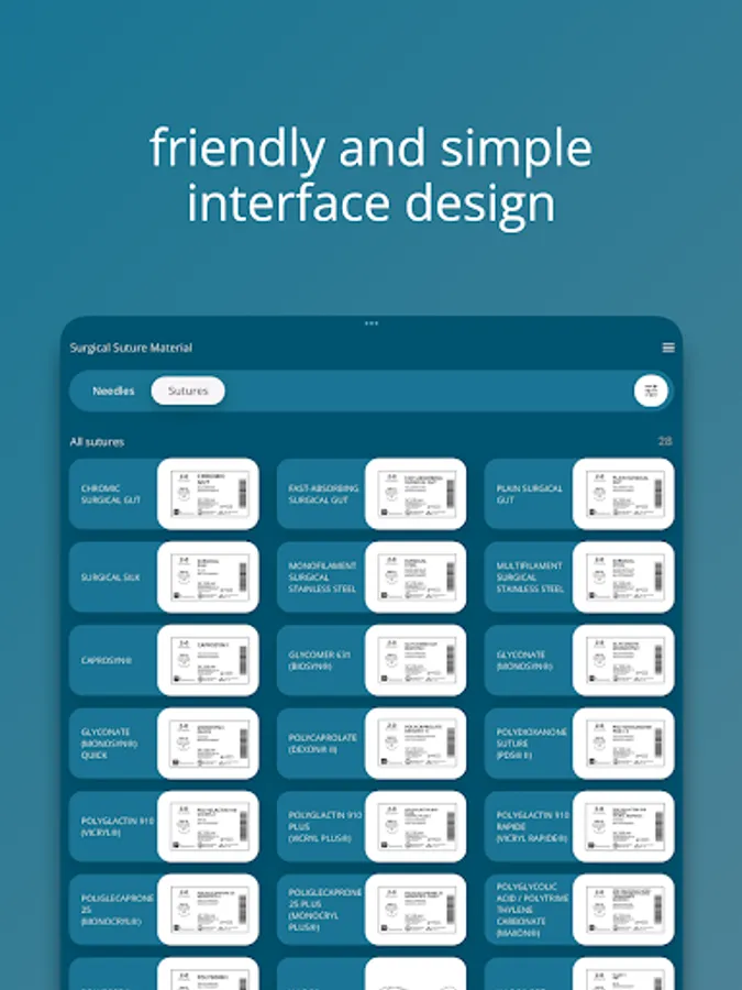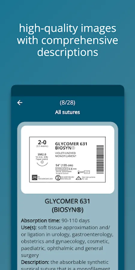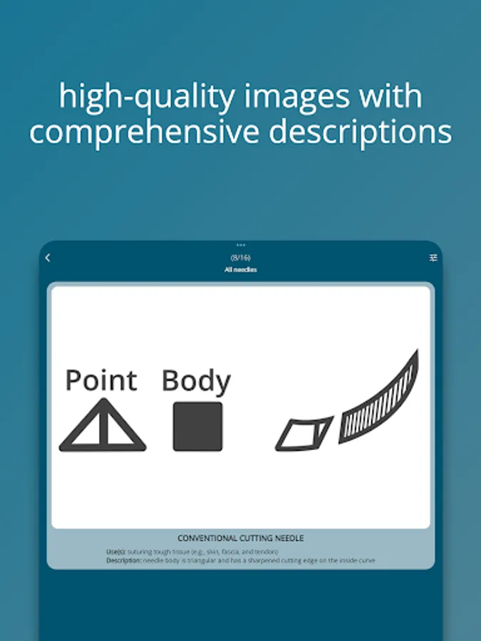 1) high-quality images of surgical needles and suture material with comprehensive descriptions