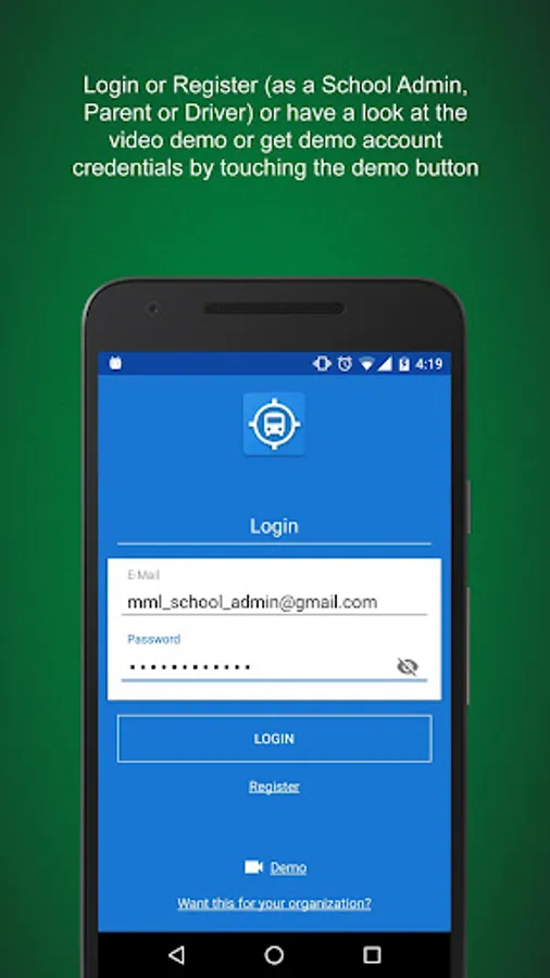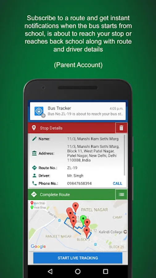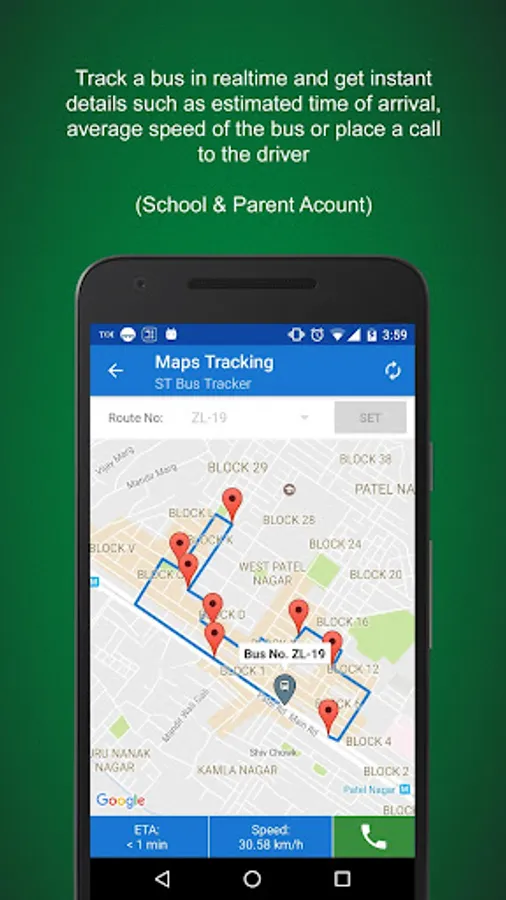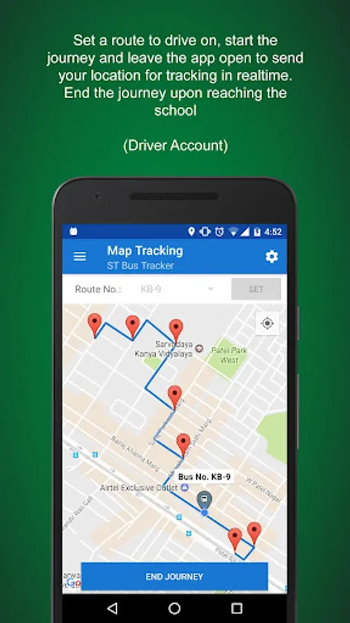 • Automatically update real time location of the bus along the journey for school administration and parents (via your device)