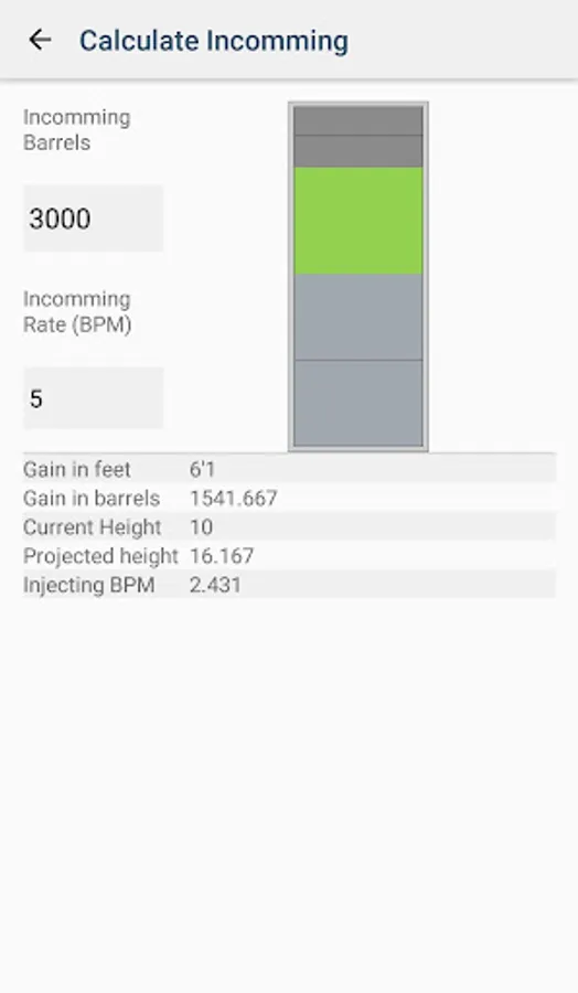 If you have a set of 10 storage tanks each 20 feet high and have a capacity of 500 barrels and the average water level of the tanks are at 11 feet and you are pumping them down to 5 feet moving at a rate of 2562 barrels per day.