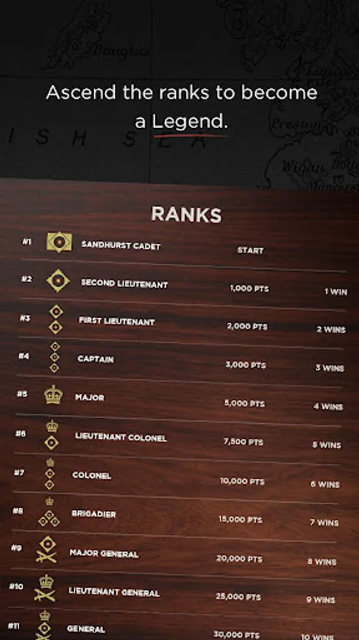 - Badges and ranks from Sandhurst Cadet through Prime Minister.