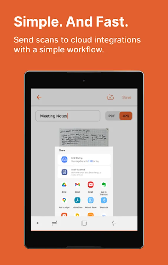 #3 Save or Share: Once your scan is captured, save it to your camera roll or share it with friends, family, or colleagues in seconds. Choose to export your scan as a PDF or a JPG.