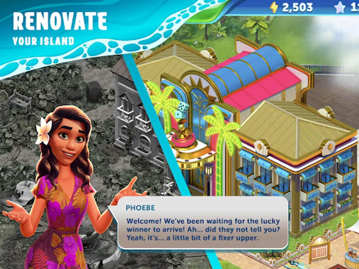 On your lucky day, you land the biggest win of your life: a casino slots resort on a tropical island. Paradise Fortune Casino game fuses enhanced virtual slots with a tropical resort renovator in a one-of-a-kind boosted casino experience that invites you to win and dream big. Spin slots to win jackpots on best in class virtual slot machine game to earn energy, then progress through the game by using this to restore and design your own enchanting casino island paradise.