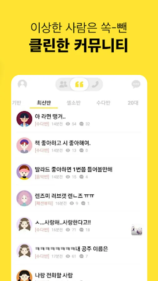 When you're bored with KakaoTalk, Facebook, or Instagram, sometimes you want to talk openly about everything from light daily life to deep worries in a place where no one knows you. It's good to come to you at times like that. Remember~ Coeducational!