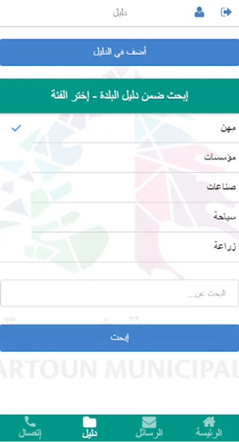 - البحث في دليل البلدة عن مهن أبناء البلدة والمؤسسات المختلفة الموجودة فيها.