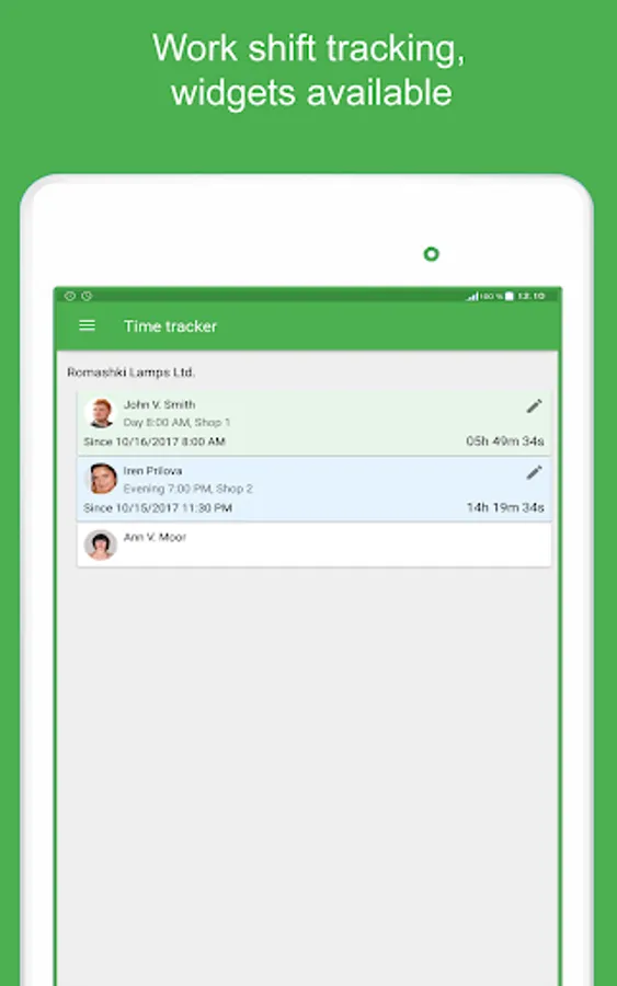Use shift templates and widgets for fast entering. There are opportunities to track the shift with handy time tracker, attach scans and documents.
