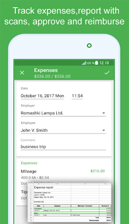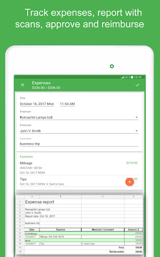 You can track mileage, tips and other business expenses to compose and submit expense report. Reimbursable expenses can be viewed in the paystub. You can also attach scan or capture the receipt.