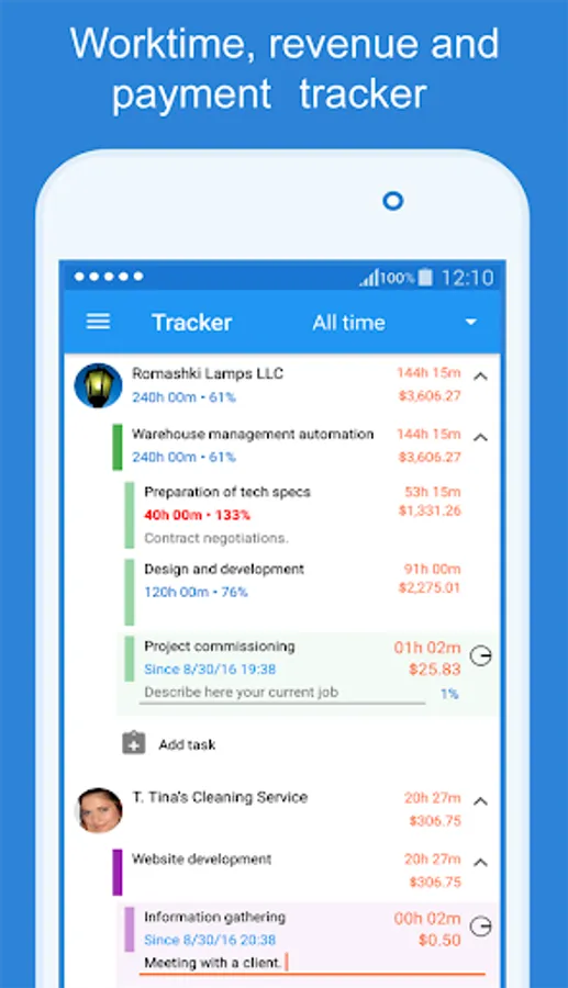 Trice – work time tracking and analyzing app. Keep track of working time, revenue and received payments. Manage overtime work by project and tasks in the real time. This app fits perfectly for freelancers, hourly workers and for all those who want to convert their time into revenue.