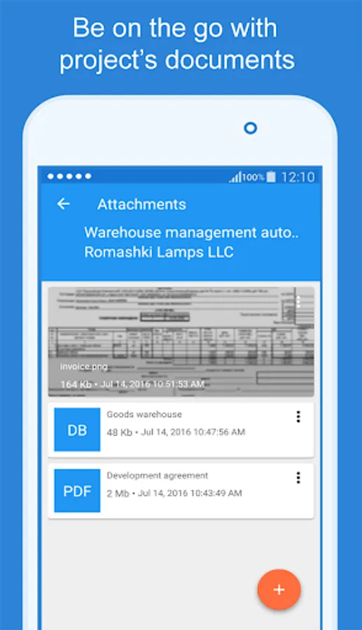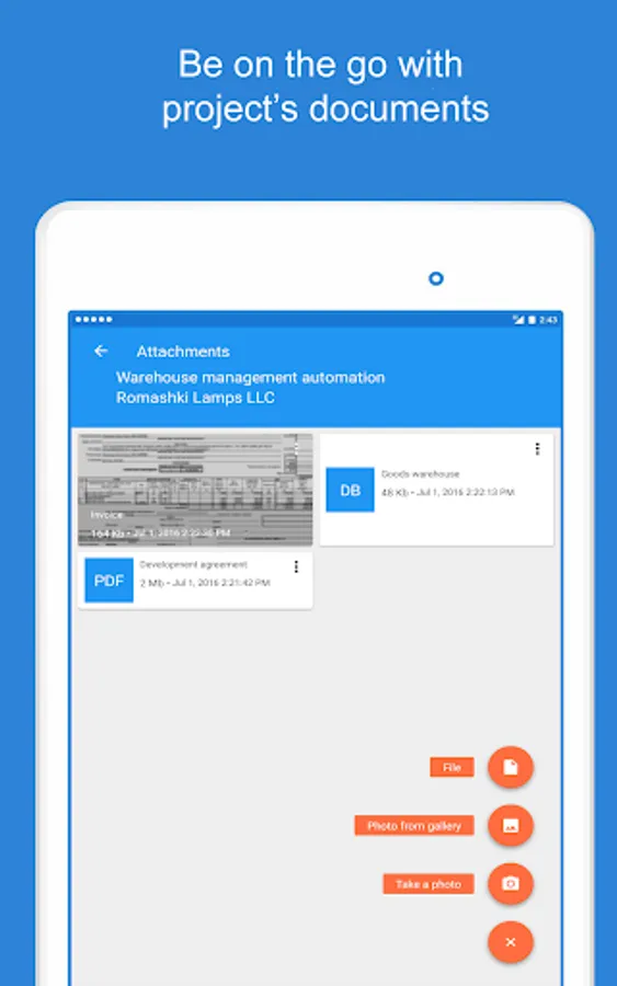 You can attach to the project necessary documents and scans to be on the go. Time log and payments can be exported to the files.