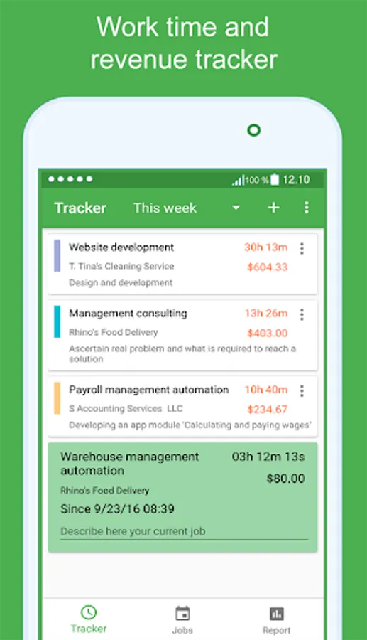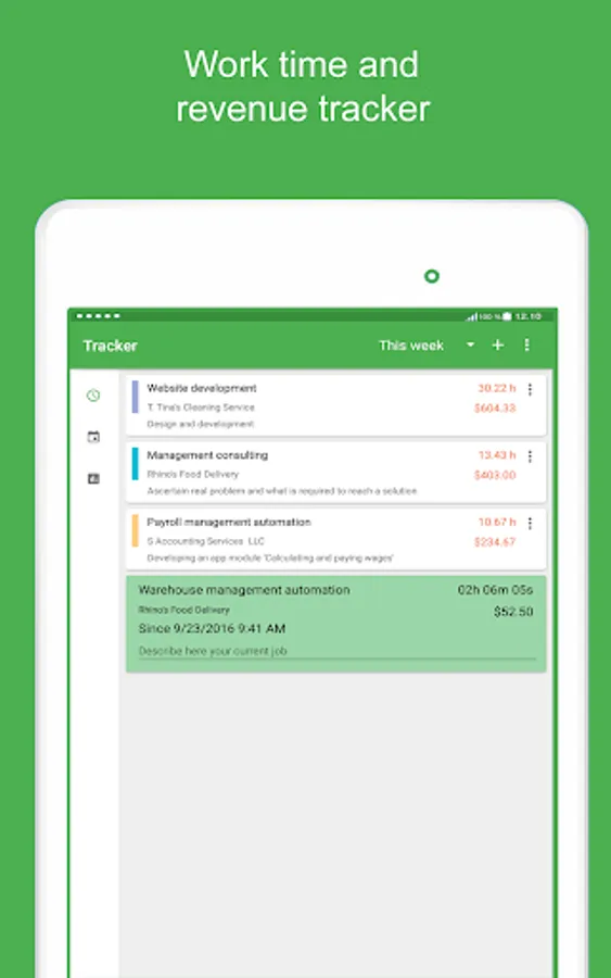 You can set hourly rates for work to keep tracking your projects proceeds. Widget on the home screen shows you an estimated project’s income for all time.