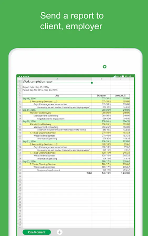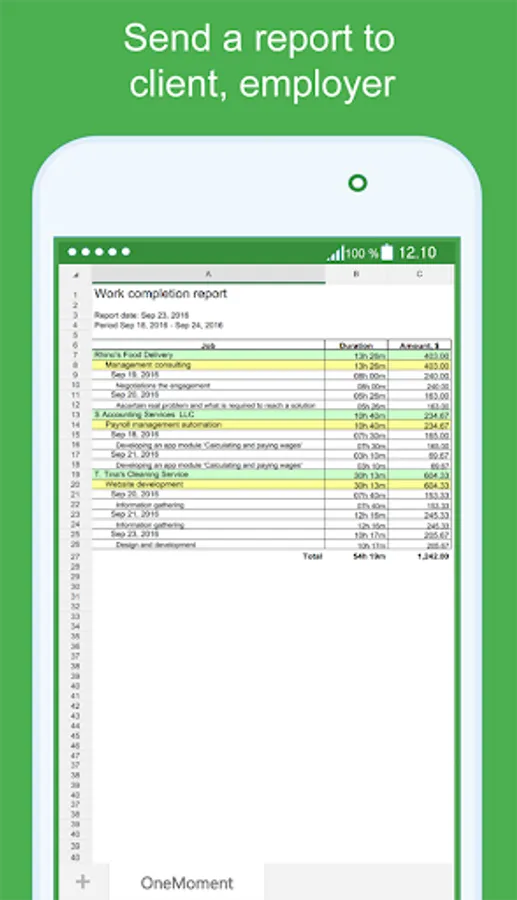 OneMoment is One-Tap way for streamlined billable hours tracking. Keep track of work time and earnings by clients, projects and tasks. Generate and send a Work Completion Report to the client or employer with easy. This app fits perfectly for freelancers, hourly workers and for all those who wants to manage their time and productivity.