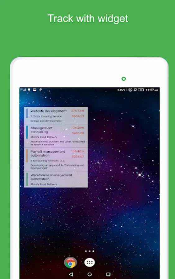 OneMoment allows you to log working time with one-tap way, providing you with a simple and intuitive interface. Place an app widget on the home screen for quick time tracking. You can track the projects simultaneously.