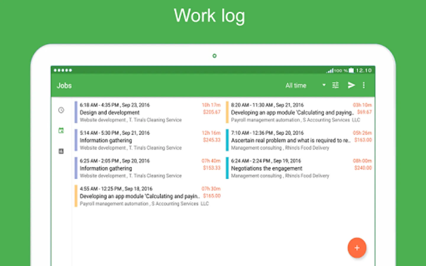 We follow the principles of the material design, so you can enjoy user-friendly and simple interface of time card app.