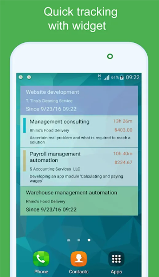 → app widget to quick tracking, running task notification;