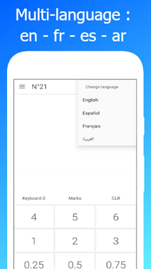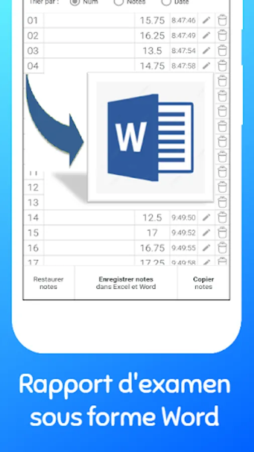 You will not need after today to enter the points "one by one" or to exhaust your mind with the calculation of parts of the points (0.25; 0.5; 0.75; ..) when correcting exam papers or putting papers in order during the entry process with this Calc prof in which you finish your work quickly and accurately and above all which gives you a detailed report on the exam automatically in which there is to the order of the learners in the classroom.