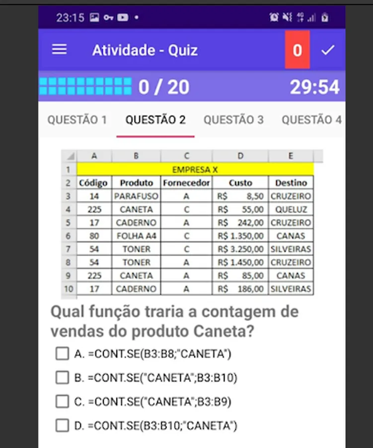 Application created for educational purposes, in order to practice quizzes on various technological topics, such as: