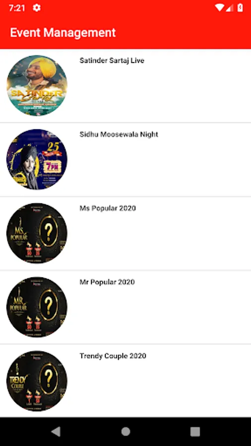 Event Management Screenshots