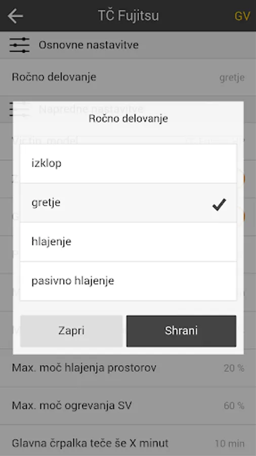 - displays information on the current performance of your system as the current and desired temperature modes;