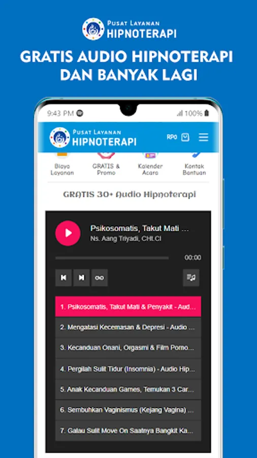This site provides information and booking of available hypnotherapist services in your city or county. With this service, it is hoped that clients can easily get hypnotherapy services in their city or the closest one, as well as provide FREE audio hypnotherapy, etc.