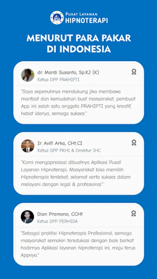 We have only been present in 25 provinces, 83 districts/cities, and 158 hypnotherapists in various regions, sorry if it is not available in your place, in the future it will be presented throughout Indonesia.