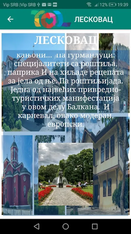 The application is intended for users who want to know more information about Leskovac. Through the application, the user can learn about various events, sights, restaurants and accommodation.