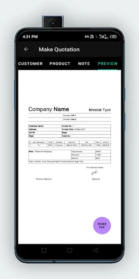 Now, the Quotation & Invoice Generator is here to help. The invoices Maker app makes it super easy to turn your Quotation into an invoice and email it to your customers. All in a matter of minutes.