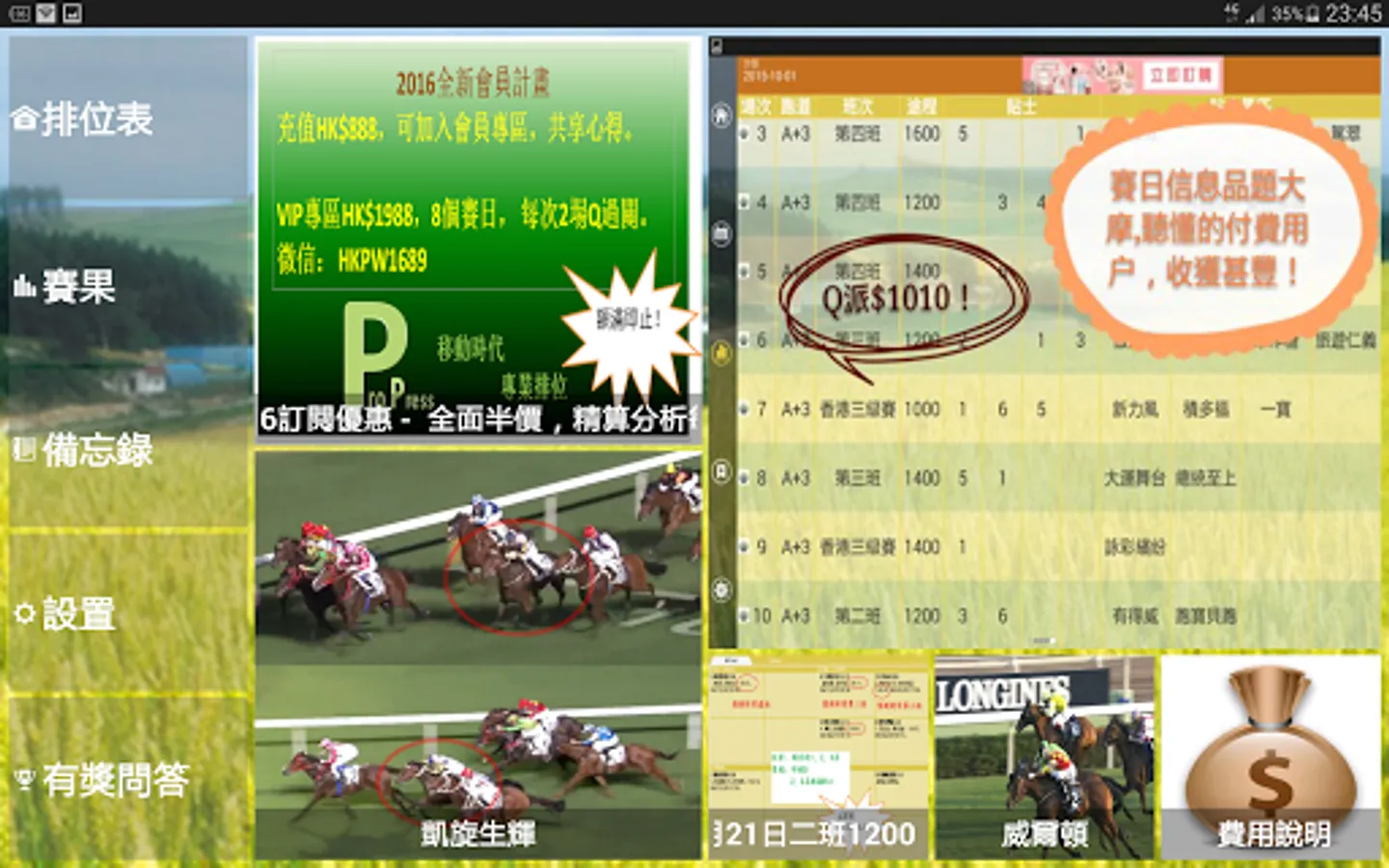 2) 免費提供檔位上名率,即時賠率,賽績,騎師變動資料。