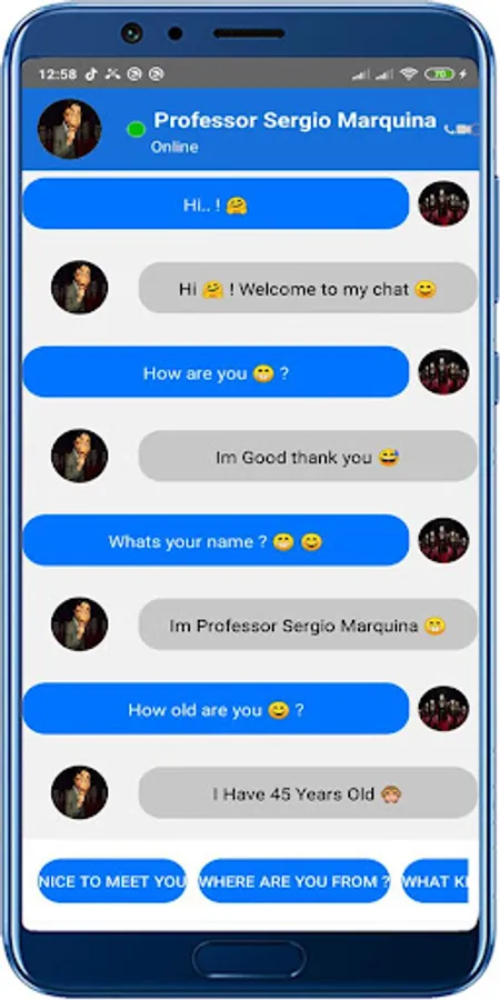 Enjoy With Professor Fake Call, this Application is a Professor Sergio Marquina fake call on your phone. Today you can prank your friends and joke with them, Connect to Professor free fake chat by clicking on the fake chat button and have fun with your friends.
