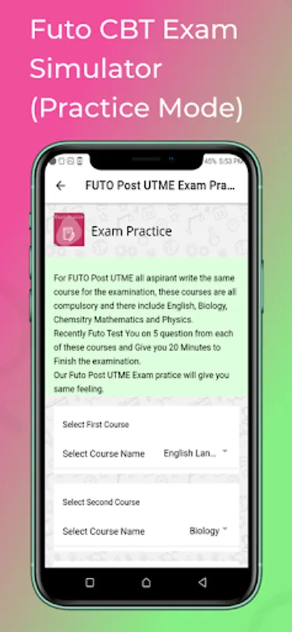 DISCLAIMER: The Questions contained in this App are the original FUTO Post UTME and Direct Entry Past questions. You might see similar but not exactly the same questions in your exam this year. We do not provide students with any material that promotes examination malpractice. The contents on this app are purely educational and suited for students preparing for FUTO post-utme and Direct Entry.