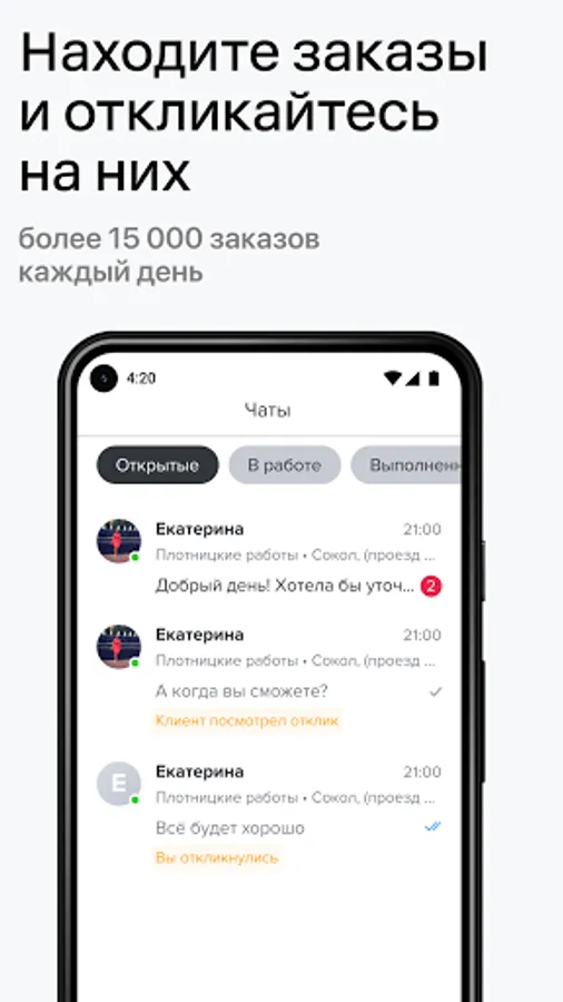 Clients evaluate the work of masters. The higher the scores, the more often customers will choose you. You don't have to spend a lot of time looking for a job. For example, a husband for an hour with a rating of 5+ receives approximately every 3-5 orders that he responds to.