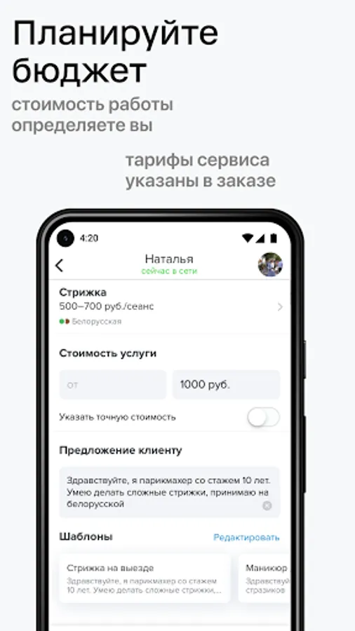Clients pay attention to the questionnaire. Fill in all the fields. If you are looking for a job near your home, indicate the areas you need. Choose a specialty, describe the conditions. For example: "Husband for an hour, work on weekends." Add photos of works, services and prices.
