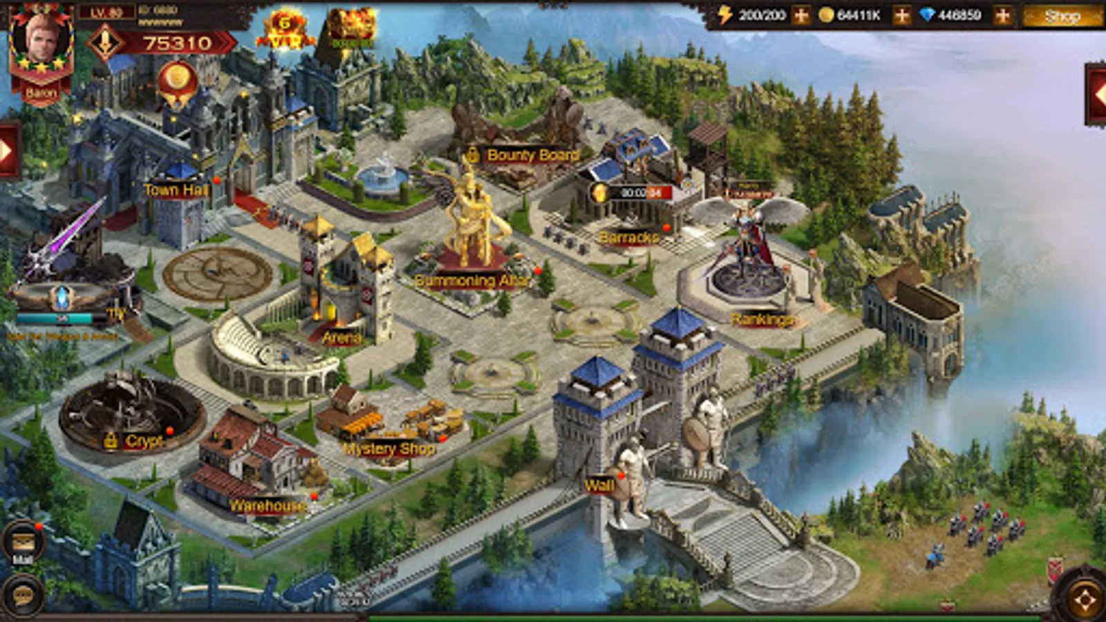 * Upgrade the Academy, Town Hall and Barracks to collect resources and expand your kingdom.
